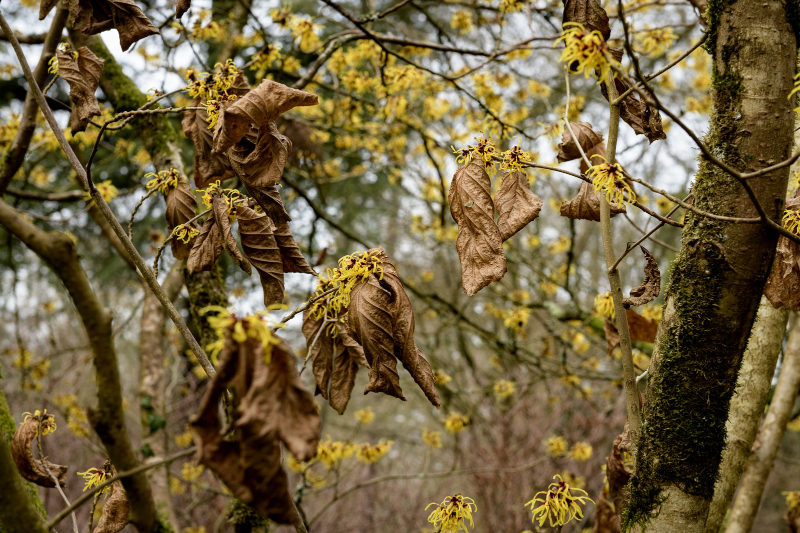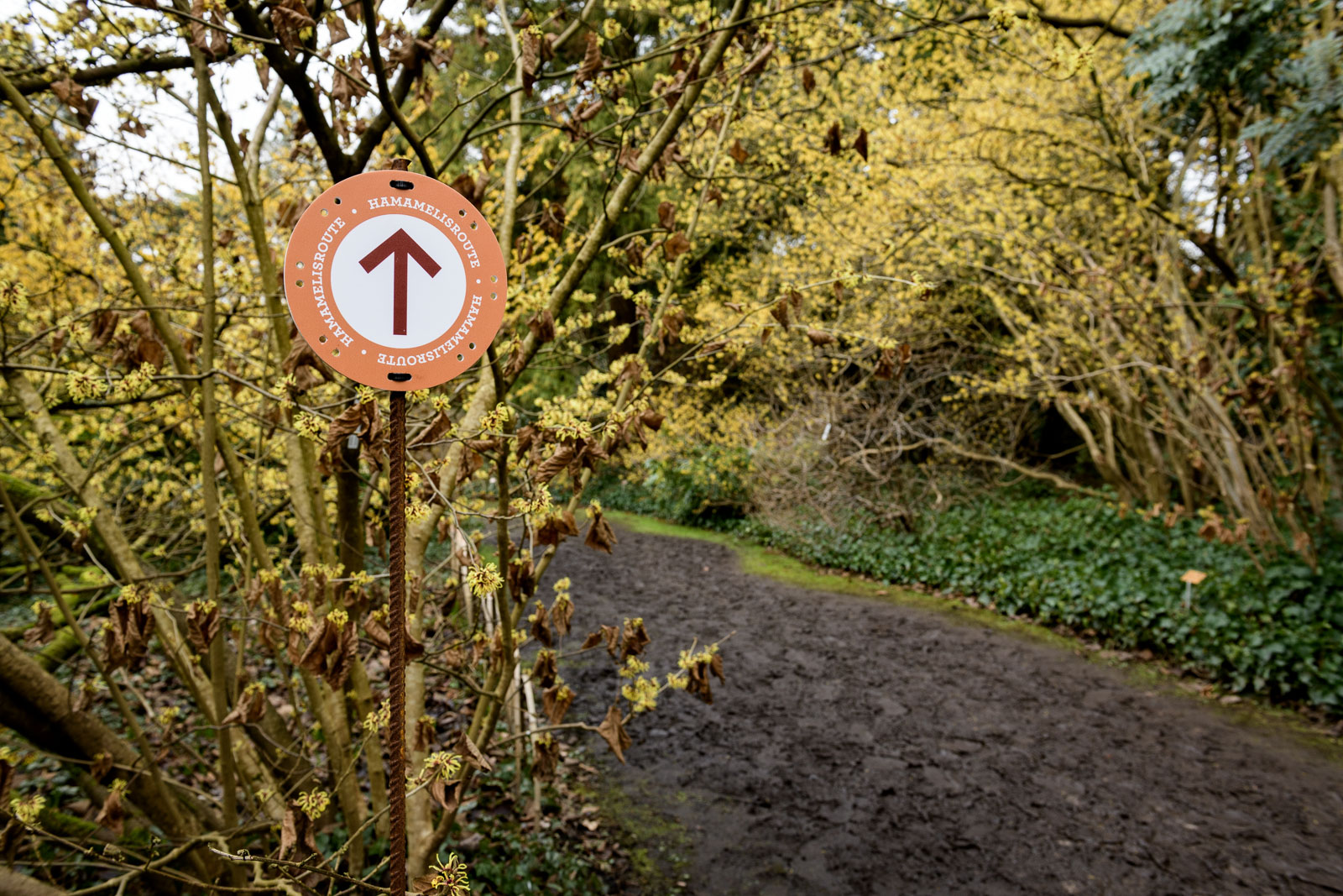 Elk jaar opnieuw kun je in Arboretum Kalmthout in België de Hamamelisroute lopen. Een wandelroute langs alle soorten toverhazelaars die hier in februari in bloei staan. Altijd de moeite waard om rond deze tijd alvast even door het arboretum te struinen, want behalve de hamamelis is er natuurlijk nog veel meer te zien, maar dan in knop. Of bij de ingang waar allerlei jonge boompjes en tuinplanten te koop zijn voor het naderende voorjaar.